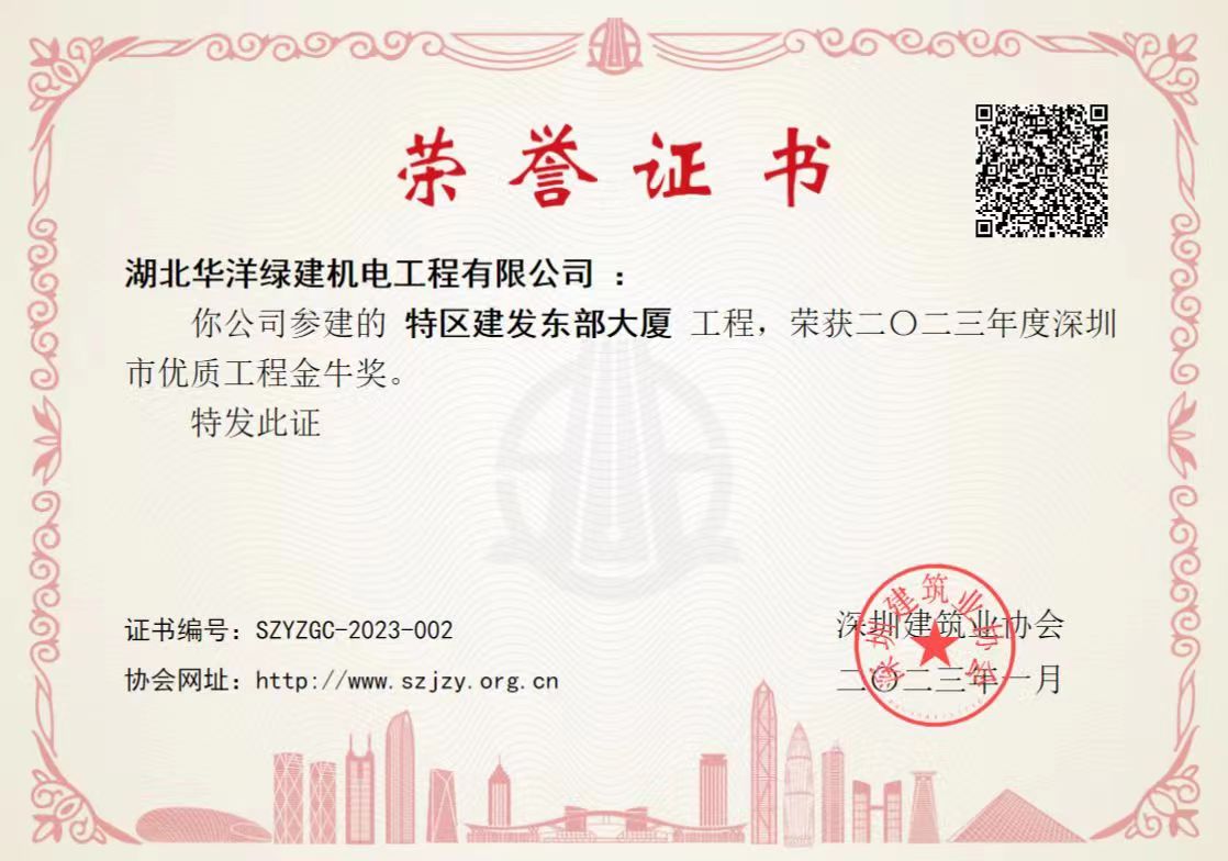 深圳特區建發東部大廈項目榮獲“深圳市優質工程金牛獎”